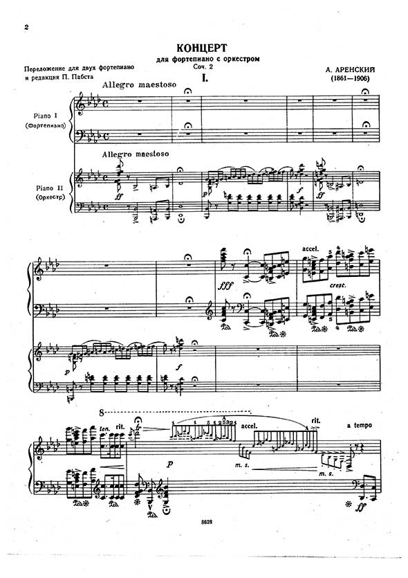 - Piano Concerto Op.2 arranged for two pianos by Arensky