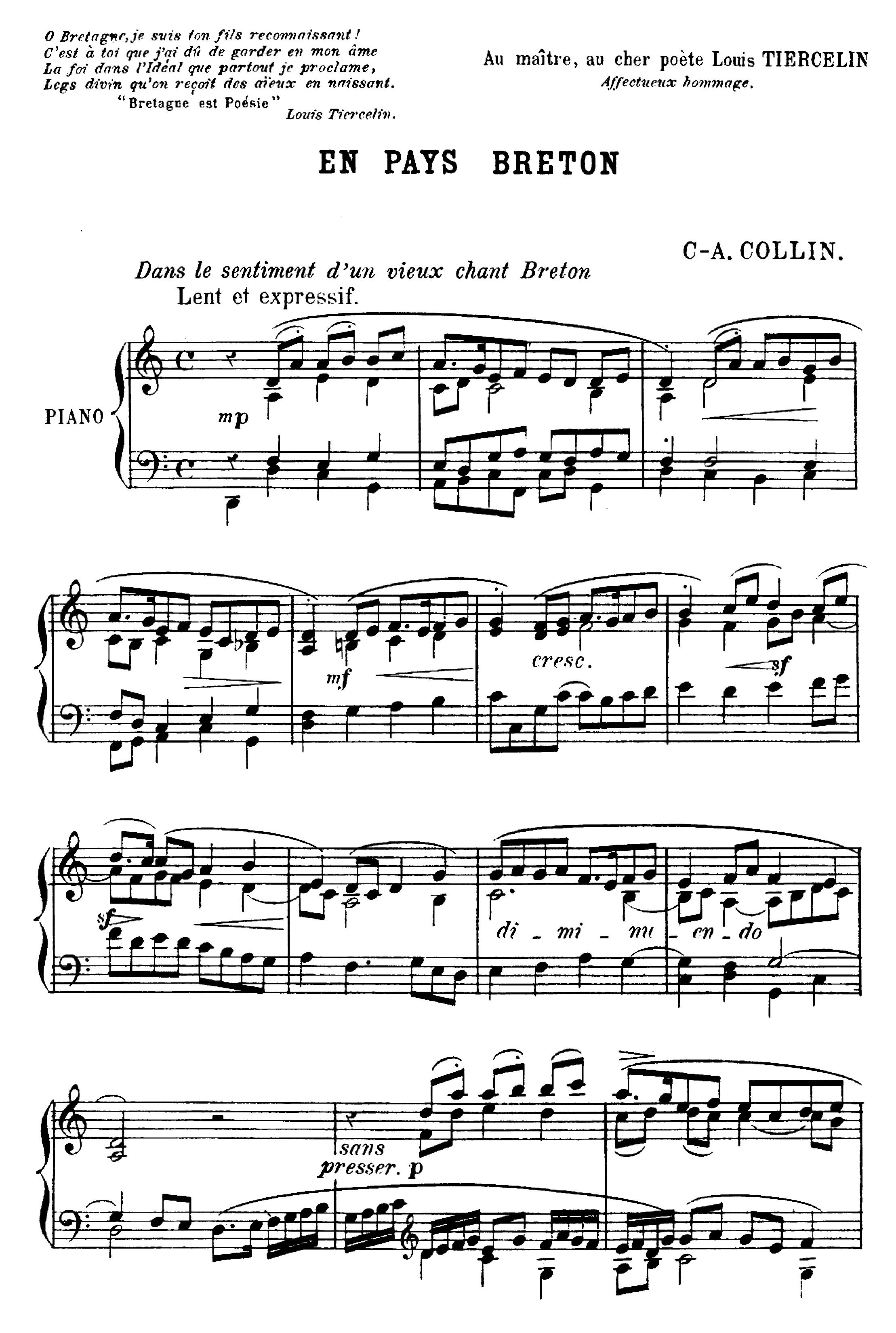 Charles-Augustin was organist of the Grand Orgue of Notre-Dame de Rennes in France (Ille-et-Vilaine) for 54 years. His father, the organist-composer Charles Collin was organist of Saint-Brieuc for over 64 years.