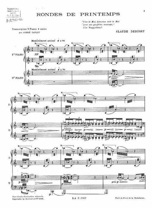- Images No.3 Rondes de printemps arranged for two pianos by Caplet