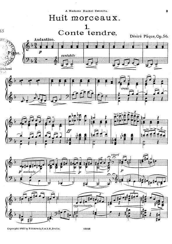 Désiré Pàque (1867-1939) was a French composer, pianist and organist, friends of Busoni and Schönberg.