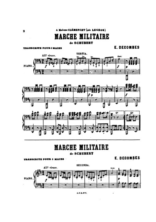 - 3 Marches militaires, D.733 transcribed for piano six hands