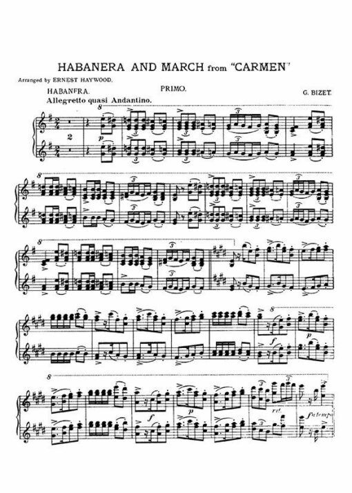 - Habanera and Toreador for piano four hands arranged by Haywood