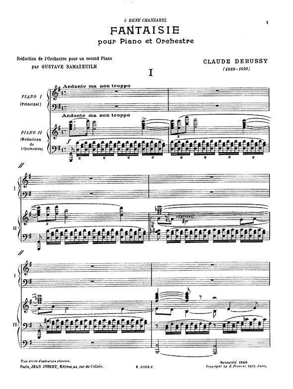 - Fantaisie for piano and orchestra transcribed for two pianos