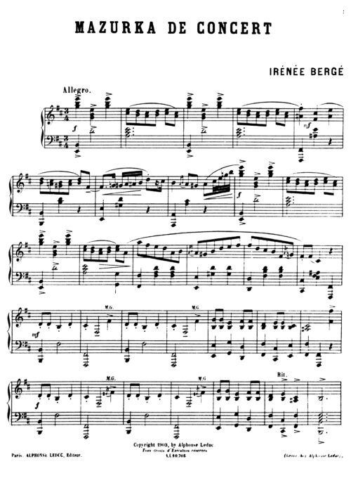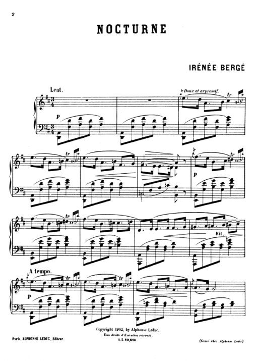 Irénée Bergé (1867-1926) was a French composer, he studied at the Conservatoire de Paris with Jules Massenet and Théodore Dubois.
