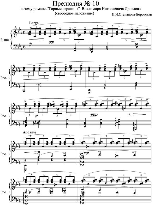 - Prelude No.10 on a theme of the romance Mountain Peaks by V. Drozdov