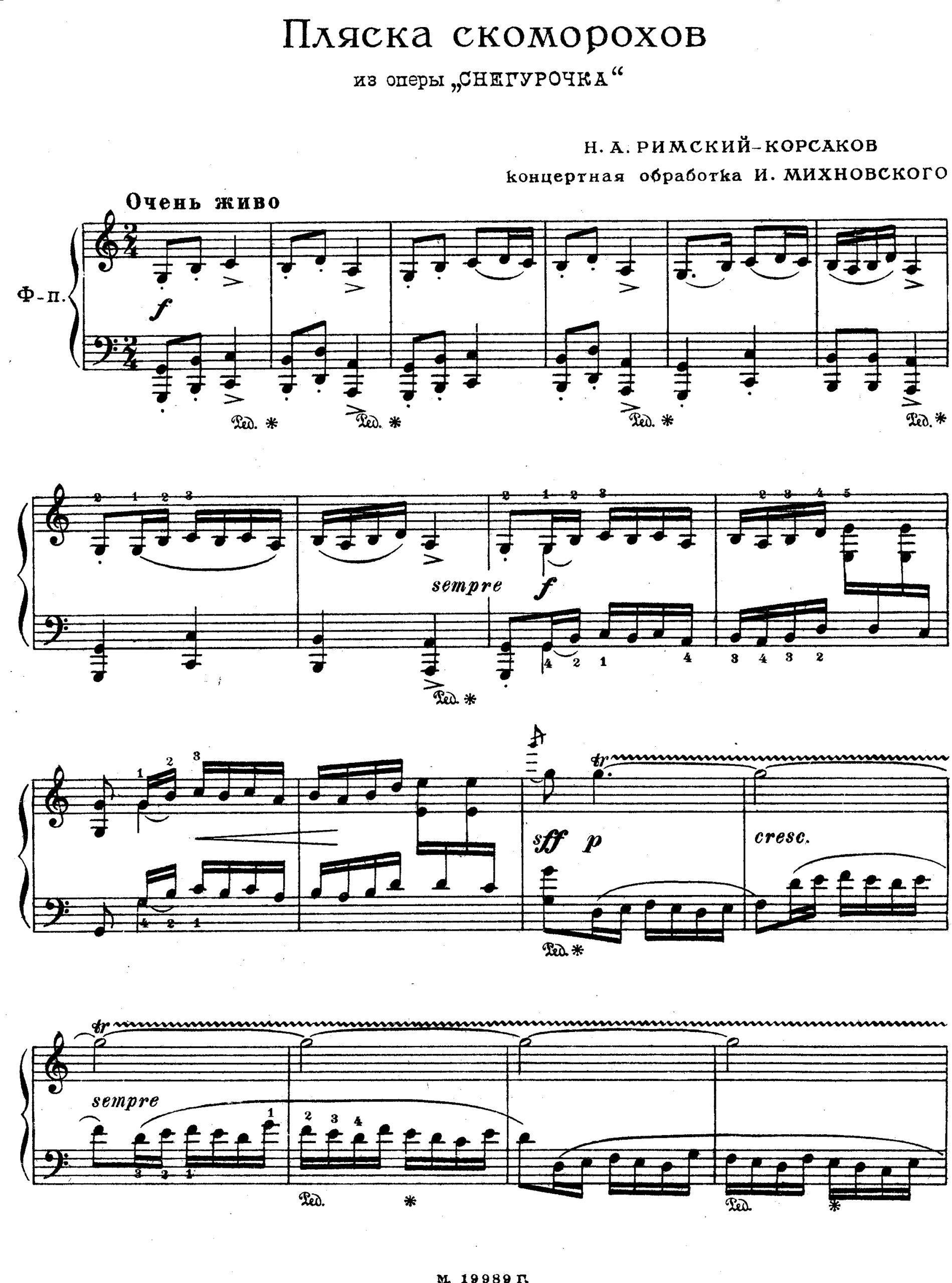 - Skomorochov Dance arranged for piano solo
