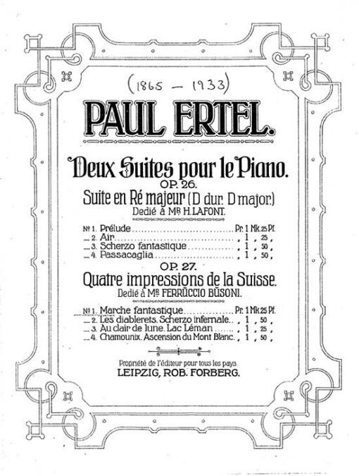 Jean Paul Ertel (1865-1933) was a German pianist and composer. He studied with Brassin and had some lessons from Franz Liszt.