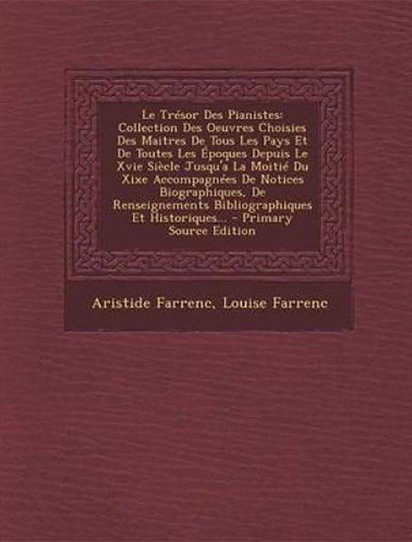 In 1861 Louise Farrenc and her husband Aristide published a collection in twenty volumes named “Le Trésor des Pianistes” – “Collection des ouvres choisies des maitres de tous les pays et de toutes les époques”. There are copies in various libraries throughout the world but it had been very difficult to collect all the volumes in a good state. We have edited each volume making it more clear and readable.