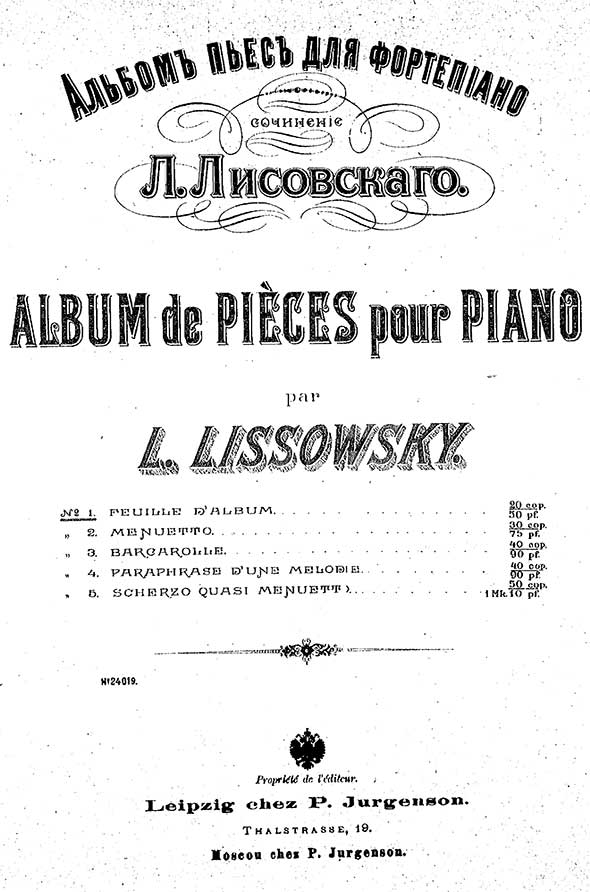 Leonid Lisovsky was an Ukrainian composer and teacher. Studied at Kharkov University, then at the St. Petersburg Conservatoire with Soloviev, graduating in 1898. Founded a music school in Poltava in 1896. Also taught in Kharkov and Tblisi. From 1918, lived in Kharkov and taught at the Conservatoire and the Music Technicum.