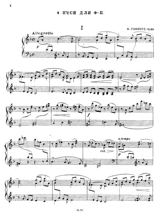 Matvey Akimovich Gozenpud was an Ukrainian composer and teacher. He studied piano with Felix Blumenfeld and composition with Gliere.