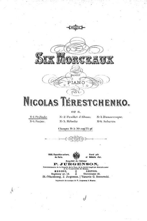 Tags: Barcarolle, Berceuse, Cello Sonata, Etude, Feuillet d'Album, Fugue, Humoresque, Improvisato, Melodie, Morceaux, Prelude, Russe, Scherzo, Vals