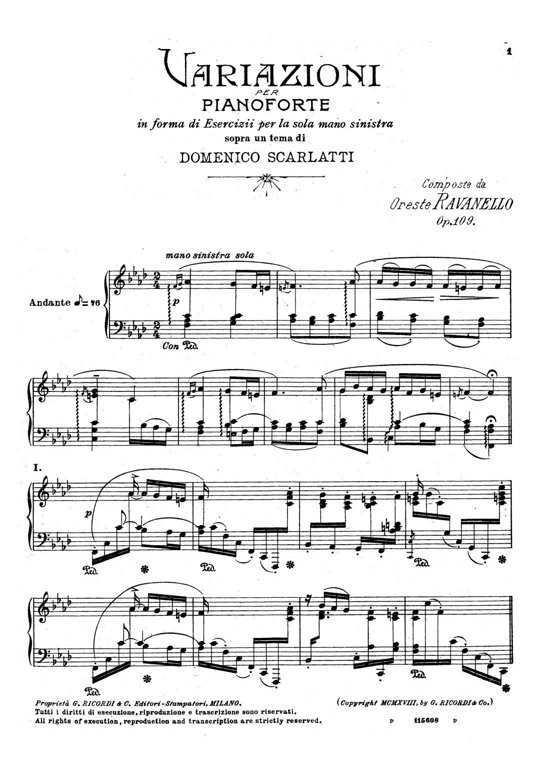 - Variazioni sopra un tema di Domenico Scarlatti Op.109