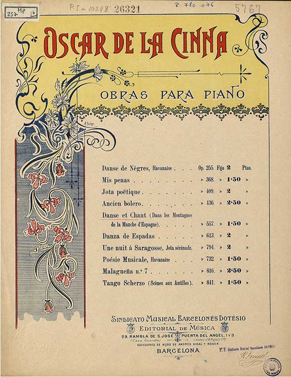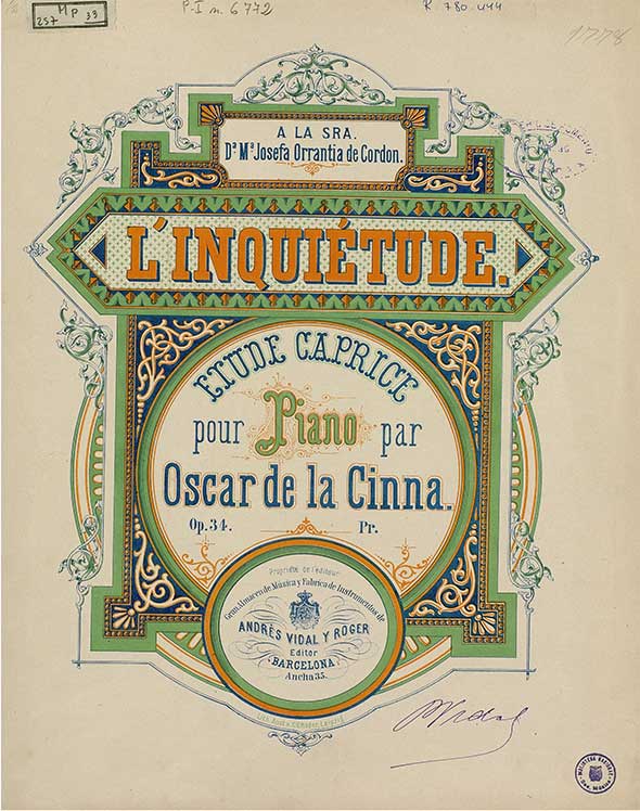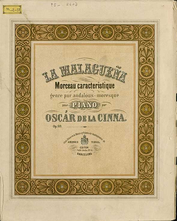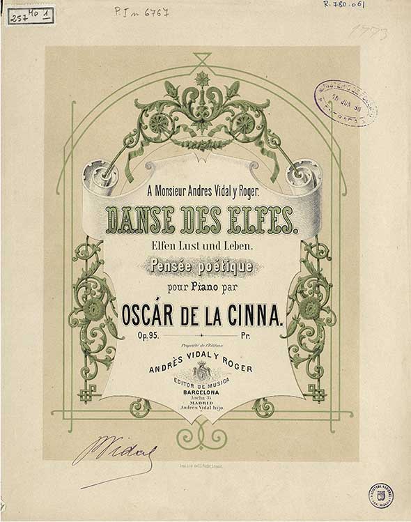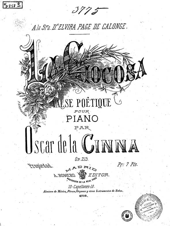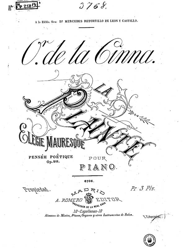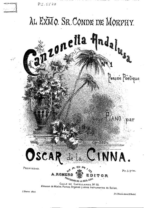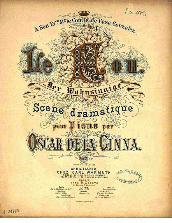 Óscar de la Cinna (Budapest 1836 – Jerez de la Frontera 1906) was an Hungarian composer and pianist who moved to Spain. Pupil of Karl Czerny and Franz Liszt.