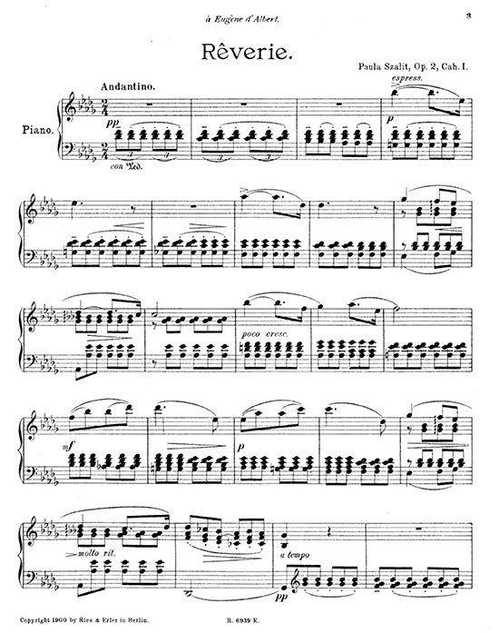 Pauline Szalitowna (1886 or 1887—1920), more commonly known as Paula Szalit was a Polish pianist and composer. She studied at what is now the Lviv Conservatory and then in Vienna with Robert Fischof, Josef Hofmann, Heinrich Schenker, Eugen d’Albert and Theodor Leschetizky.