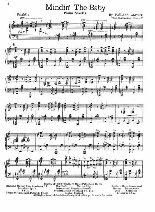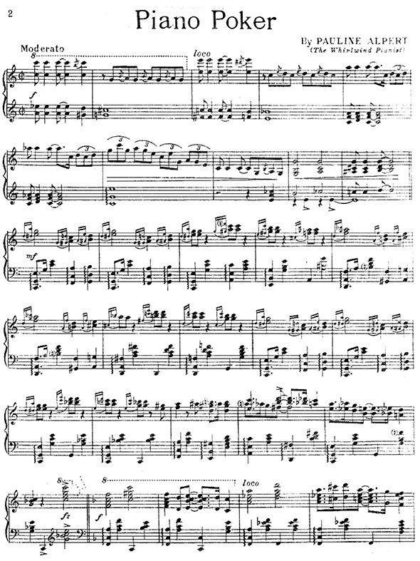 Pauline Alpert was an American pianist, known for her snappy arrangements and rapid playing. Her embellishments are clever and entertaining.