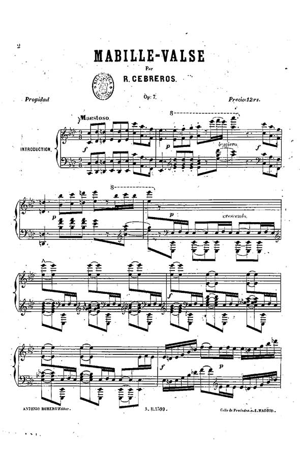 Rafael Cebreros (1851-1898) was a Notable Spanish pianist and composer.