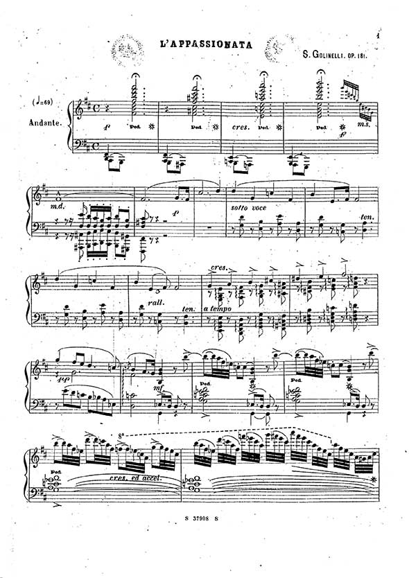 Stefano Golinelli (1818 – 1891) was an Italian piano virtuoso and composer. He composed a large number of works for the piano, especially noteworthy 3 Sonatas, and 2 collections of 24 Preludios, op. 23 and 69. At his death, he left his Érard piano to the Accademia Filarmonica di Bologna.