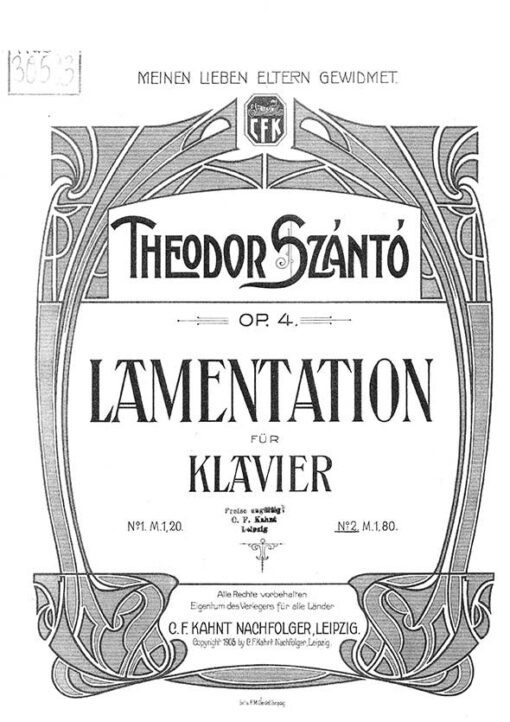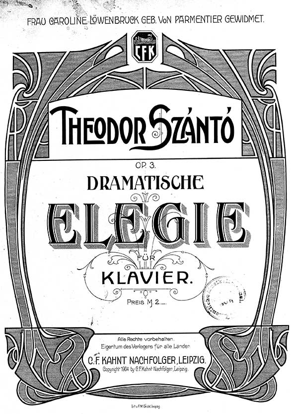 Theodor Szántó was an Austrian‐born Hungarian pianist and composer (Tivadar Szántó, Vienna, 1877 – Budapest, 1934). He studied with Busoni in Berlin from 1898 to 1901 and afterwords made a career as a pianist. As a composer, Szántó was very interested in the music of Japan and incorporated his exploration of it into his own music.
