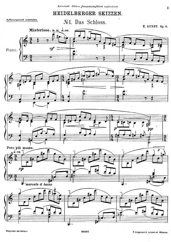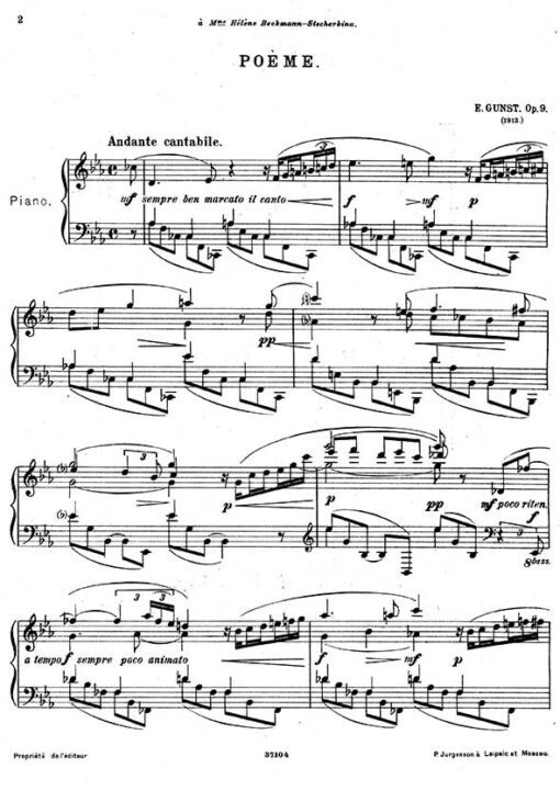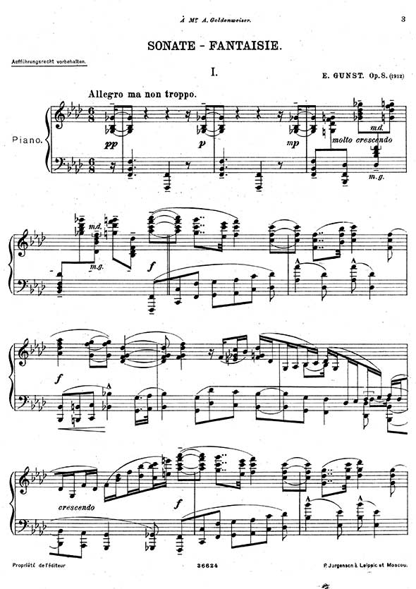 Yevgeny Ottovich Gunst was a Russian composer, pianist, music essayist and pedagogue. Gunst was born in Moscow to Otto Karlovich Gunst, member of the State Council of Imperial Russia, who had German ancestors. He studied law as well as composition, music theory and piano at the State Conservatory, also having private lessons with renowned composers like Reinhold Glière and Alexander Goldenweiser. In 1909 he co-founded the Moscow Chamber Music Society along with Sergei Rachmaninoff amongst others.